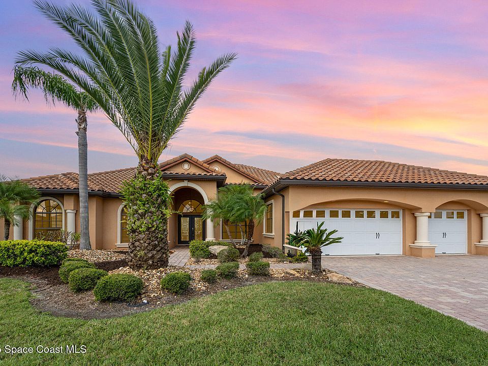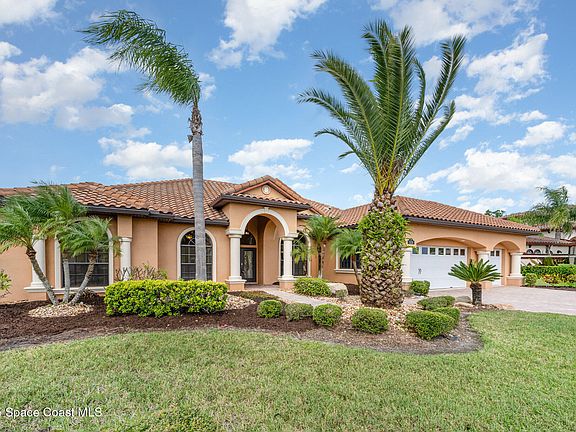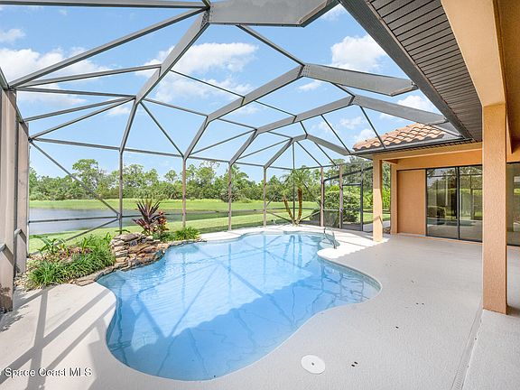 Discover luxury living in this exquisite 4-bedroom plus den, 3-full bath home featuring breathtaking lake views and unparalleled privacy with preserve behind. Unwind by your spectacular pool with dramatic rock/stone waterfall while enjoying magnificent sunset views from the expansive pool deck. The gourmet kitchen showcases upgraded cabinetry and elegant quartz countertops, while brand new wood-look tile flooring flows throughout the home.The impressive master suite boasts his and her walk-in closets for ultimate convenience. Additional highlights include an electric fireplace/TV wall with custom built-in cabinetry and quartz countertops extending into all bathrooms. Located in Viera's most desirable upscale gated community, residents enjoy resort-style amenities including an Olympic-size community pool,tennis courts,soccer field, and playground.Prime location offers easy access to premier shopping and dining, making this the perfect blend of tranquil retreat and convenient lifestyle.