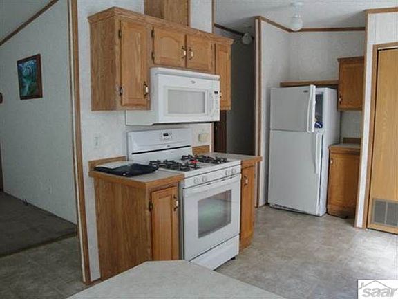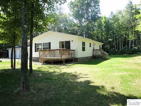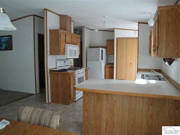 Immaculate 2 Bedroom 6 year old manufactured home on 5 plus acres. Dining area has patio door to 10x10 deck. Kitchen has nice cabinets and the appliances are like new. Living room is bright. Master bedroom has walk in closet and bathroom. The second bedroom and bath gives this home plenty of room. There is abundance of storage with the three stall garage and shed. This home shows pride in ownership.