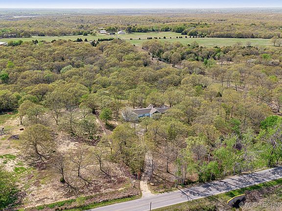 Looking for a little bit of country and a little bit of town? Just five miles from Pier 51 and less than 30 minutes from downtown Tulsa, you'll be on the water while everyone else is still in traffic! On 5 acres, this split-floor plan, sprawling ranch-style home sits well off the road. The home welcomes you into a beautiful, Native stone-floored foyer and formal dining room with skylight views. The living room feels a world away with a vaulted wood paneled ceiling and beams, a floor-to-ceiling brick fireplace, and floor-to-ceiling picture windows which flood the living room and kitchen with light and views of the trees and wildlife outdoors. The galley kitchen has a sunny breakfast nook and high above is a loft that could be an office, private study or children's hideout. Throughout the home are large closets and plenty of storage. The spacious primary suite has a comfortable three-piece step-in shower, and from the suite you have access to the sunny game room and backyard. The extended-length garage will accommodate a bass boat and plenty of gear. Outside maintenance is minimized, with a three-year-old roof and newer windows. There's a small pond and a spring creek, a 15x20 shed, and a sturdy 15x20 chicken coop, a deer-fenced garden and firepit, all just waiting for you to make your outdoor dreams come true!