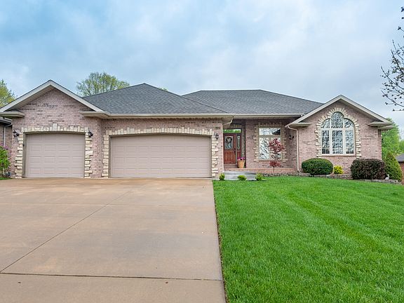 5118 S. Burrows is a pristine walkout basement home in Kickapoo schools. Gorgeous finishes highlight this 5 bedroom, 3.5 bath home with a 3 car garage. Custom features like granite counters, grid ceiling treatments, pretty hardwoods, huge pantry, secretary desk, covered deck & patio set this home apart! The great room boasts a beautiful fireplace and is open to the chef's style kitchen/dining area. Two bedrooms are on the main level with 3 more in the basement. Enjoy the massive master bedroom with double doors, raised ceiling & nice bathroom ensuite with jetted tub & separate shower. The large basement family room features a second fireplace, wet bar & windows galore plus another full bath. The backyard is large with lush landscape, patio & storage. New Trane HVAC system too!