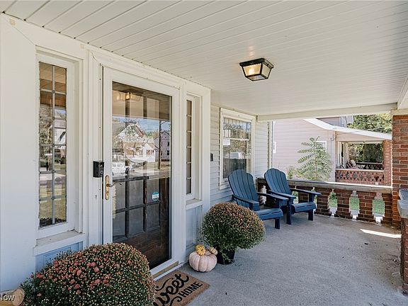 Set on a quiet, friendly street, this charming colonial is designed for both comfort and everyday family living. A welcoming front porch invites you inside, where the foyer flows into a spacious living room filled with natural light and anchored by a classic brick fireplace. French doors open to a bright office or sunroom with built-ins—ideal for homework, working from home, or a cozy reading nook. Entertain with ease in the formal dining room, featuring original leaded glass cabinets and sunshine-filled windows, or gather in the updated kitchen with subway tile backsplash, quartz countertops, stainless steel appliances, and a delightful eat-in area with built-ins. A convenient half bath completes the first floor. Upstairs, three generously sized bedrooms offer hardwood floors and space for the whole family. The expansive full bathroom features a double vanity and tile shower surround, while a walk-in closet and dressing room provide organization and style. The full basement adds even more living space with a finished recreation room, a second full bath, and plenty of storage for family essentials. Step outside to a deep backyard with a patio for summer barbecues, playtime, and relaxation, along with a two-car garage equipped with a 220-volt outlet (dryer outlet) for EV charging. Modern convenience meets peace of mind with a Ring Alarm system, outdoor cameras, and doorbell cameras—all staying with the home. Perfectly located near parks, schools, and shopping, this home is ready for your family to move in, make memories, and enjoy all that Lyndhurst has to offer.