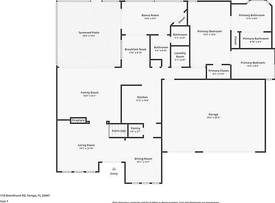 Welcome to this inviting 4-bedroom, 3-bath home in Tampa, FL, offering 2,664 square feet of comfortable living space and exceptional features throughout. With a three-car garage, screened-in patio, and a large fenced yard with a manicured lawn, this home delivers both functionality and charm.