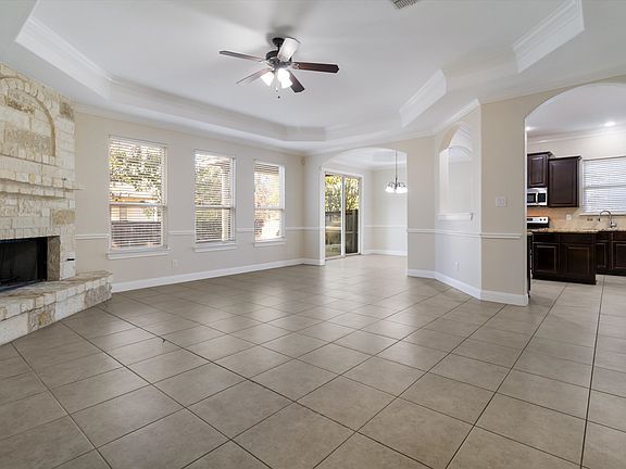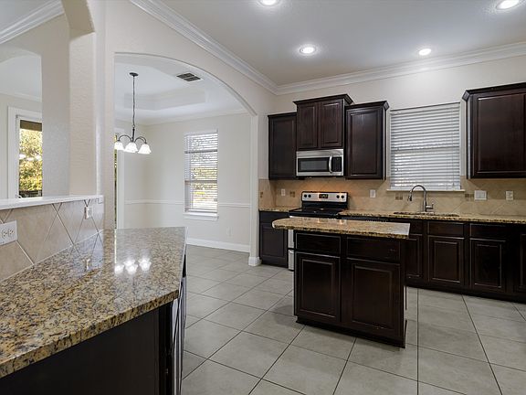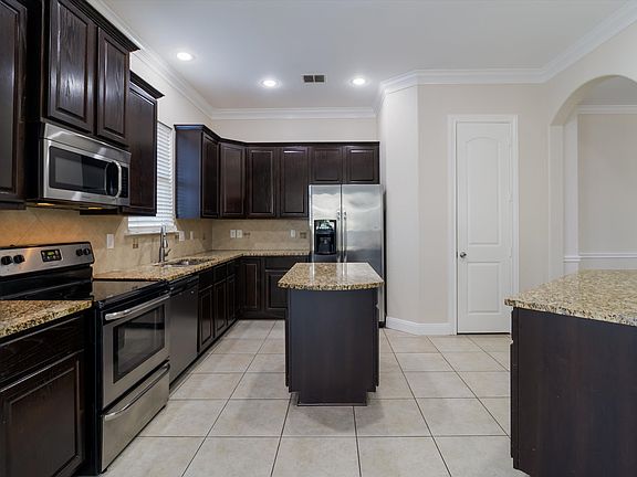 Welcome to this beautifully designed 4-bedroom, 3-bathroom, 2-car garage home offering exceptional comfort and style. This move-in ready property features soaring 12-foot ceilings in the entry and 10-foot ceilings throughout the remainder of the home, creating an open and elegant atmosphere from the moment you step inside. The kitchen is equipped with stainless steel appliances, granite countertops, and double crown molding, which continues into the family room, formal dining, and living areas-adding a refined touch to the entire living space. Each bedroom includes single crown molding for a clean, finished look. Enjoy 16" x 16" tile flooring throughout the main living areas and carpet in all bedrooms, offering a practical blend of comfort and durability. This home has been thoughtfully maintained and is ready for immediate occupancy. Don't miss the opportunity to lease this spacious and elegant home in a well-established neighborhood. Schedule your tour today!