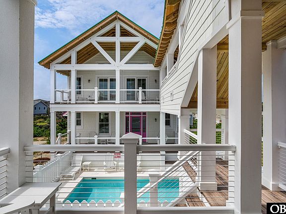 A Signature Heritage Series home, SugarPops blends artisan craftsmanship with playful coastal luxury—a design-forward showpiece redefining what it means to live well by the sea. More than a beach house, SugarPops is a living coastal experience designed to delight, inspire, and endure. This remarkable five-bedroom, 4.5-bath retreat spans two bold structures anchored around a sparkling concrete pool and travertine sun decks. The 1,774 sq ft main house features four bedrooms of refined style and industrial-beach flair, while the two-level, 727 sq ft guest retreat adds a private en-suite sanctuary connected by a storybook covered bridge. Inside, the main residence impresses with exposed ash rafters, stainless steel ductwork, and an open-concept layout that embodies the industrial beach aesthetic. Hand-distressed wood floors, poplar ceilings, custom oak railings, and vintage bronze fixtures complement hand-built cabinetry and 3-inch marble countertops, creating a refined yet relaxed atmosphere. Built to stand tall against coastal conditions, SugarPops is a fortress of form and function with vinyl-coated stainless wire railings, PVC Interlocking High-Impact Core Siding, a .040-grade metal roof, and Zuri synthetic decking. The interlocking balloon framing system, adhesive bonding, and stainless-steel fasteners reinforce every inch for unmatched strength. This home was not built with normal standards because they loved and cared for it like their youngest child with no expense spared. This home was meticulously designed and constructed at over $700 per square foot—a reflection of unwavering dedication to quality. Built with sheer walls for structural superiority and infused with imported materials of the finest caliber, every inch was crafted to endure. SugarPops was created to stand strong for the next three generations—a legacy home of rare distinction and timeless design. The pool house defines coastal living with a surf-inspired lounge, half bath, outdoor shower, and upstairs primary en-suite with a private balcony. Steps from the Atlantic and walkable to Kitty Hawk Pier, Rundown Café, Hilton, Villa Thai, and Byrd Street beach access, SugarPops embodies Outer Banks cool—where retro charm meets modern resilience and everyday living feels like an endless summer. A true private second home allows you to close immediately with no rentals to worry about. There’s quality… and then there’s the defined difference: 5118 N. Virginia Dare Trail—SugarPops—a Serhant Signature Listing.