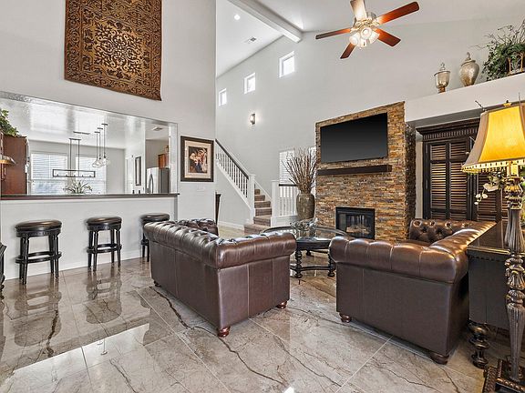 - Ceiling Fan(s), Granite Counters, High Ceilings, Kitchen Island, Kitchen Open to Family Room, Remodeled, Two Story Ceilings