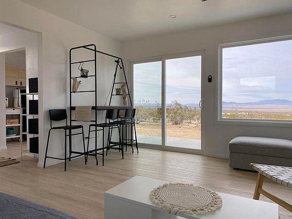 WOW... Check this out! Full Solar Off-Grid Home on 5 acres in Johnson Valley with Full RV Hook-Ups! Landers adjacent just 10 minutes from Giant Rock Meeting Room and close to Joshua Tree, Pioneertown & all the Mojave Hot Spots! 45 minutes in the other direction to Big Bear. Brand new items: 2,500 gallon water tank and pump system, septic system, solar system, mini split a/c & heat, roof, windows, stucco, paint, insulation, drywall, lighting, bathroom, kitchenette, flooring, baseboards, concrete patio and shed. One bedroom, one bathroom, 400 square feet that feels much larger with views all around. Turn key Furnished! Nicely appointed and styled. BLM land on two sides for the ultimate privacy. Everything the desert has to offer plus right across the highway from the World Famous 'King of the Hammers' Off-Road Annual event!