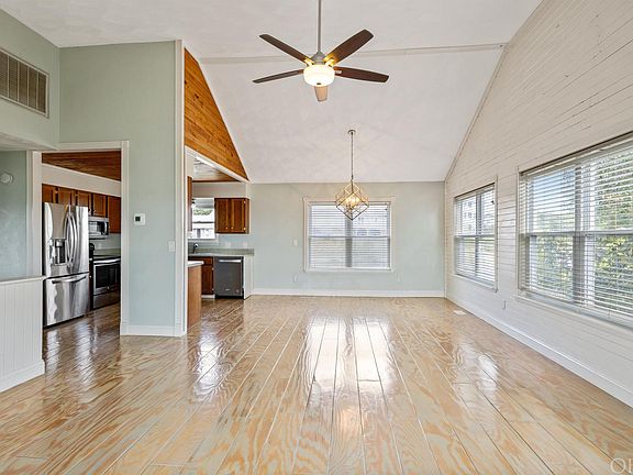 Stunning Ocean views form this classic Outer Banks beach cottage located in the highly sought-after Sea Scape golf community! This home offers beautiful ocean views from the living room, master bedroom and decks, as well as the large screened porch and rooftop deck. With updates throughout every room of the house, this lovely reverse floor plan home boasts five bedrooms and three full baths. The top level contains the living room, dining area and kitchen arranged in a bright, open layout. The living/dining area has a 9 foot cathedral ceiling, painted wood panel, updated ceiling fan and chandelier. The updated kitchen features all stainless steel appliances and new dishwasher purchased in 2023. Rustic, beachy pine flooring runs through the living/dining area and continues down the hall to the bedroom and bath. The master bedroom is also on this level, with vaulted ceiling, ceiling fan and classic beach cottage wood wall panels. The top floor also has a full bathroom with a tub/shower combo, with updated vanity, toilet and flooring. A sliding glass door in the living room leads to the screened porch, unscreened decks and stairs to the rooftop deck, all with ocean views. A renovated wood staircase leads down to the middle level, where there are four bedrooms, two full baths and utility closet/storage space. The second bathroom is located on the main hallway and has tub/shower combo, new vanity/lighting and updated flooring. The third bathroom adjoins two bedrooms and has a stand-up shower, updated flooring and lighting. All window trim and baseboards have been upgraded throughout the house. Leaving the middle floor through the glass storm door, you'll find a huge wrap around porch with built-in bench, additional side deck sitting area, and stairs on either side of the house. One set of stairs leads to the fully-enclosed outdoor shower and the recently added sun deck situated next to the grassy side yard. The other stairs lead to the driveway and four parking spaces. On the ground level there is full wood deck under the house, beachy wood slats and room for one car to pull in a covered spot. The level also has a utility room/workshop and contains the washer, brand new dryer, gas water heater (2016) and floor coating. A large, sturdy storage shed has been added to the property and the huge backyard is fully-fenced. The entire lot is over a third of an acre and is located in desirable X Flood Zone. The HVAC system was replaced in 2020 and the septic drain field was replaced in 2021.