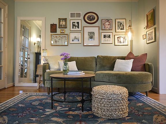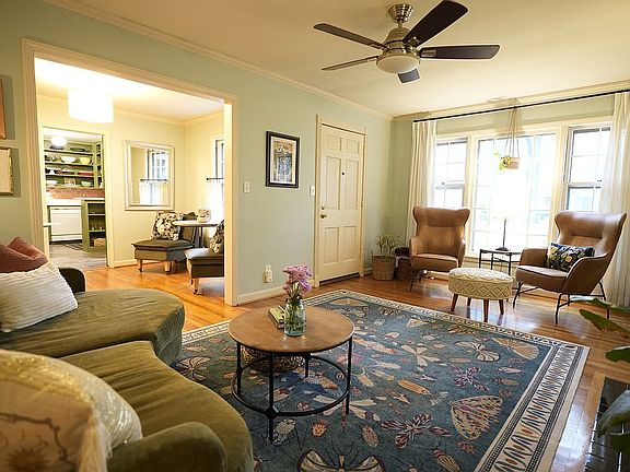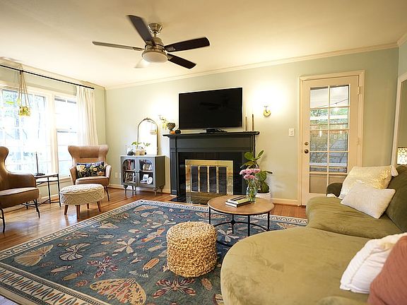 Hardwood floors throughout. Living room with fireplace and attached screened porch.