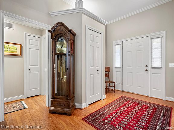 Take a look at this beautifully maintained & updated Custom Ranch! This home offers Great room with wood floors, gas fireplace & Plantation Shutters. Dining room with wood floors & large window overlooking the front yard, Kitchen with newer Anderson Door wall, plantation shutters, remote blind, wood floors & all appliances stay. Primary bedroom with vaulted ceiling & views over looking the backyard, New Primary bath with tons of natural light, huge walk-in shower, separate toilet room & large walk-in closet. Bedroom two & three with carpeted floors & hallway full bath. First floor laundry room with new washer & dryer with adjacent half bath. Finished Lower level with Open recreation room with full kitchen, exercise room & hanging TV stays, 3 separate storage area’s! Awesome newer cement driveway, front porch & steps with exposed aggregate, back yard Trex Deck & gorgeous landscaping! 2.5 Car side turn garage with side curb & rear entry door to the backyard. New Roof (2020), New furnace, Air Conditioner & Humidifier ( 2020), New Hot Water Tank( 2025). This home is a Polished GEM!