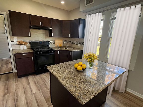 - Features: Kitchen (Eating Area-Breakfast Bar, Island, Granite Counters, SolidSurfaceCounter), Flooring (Vinyl), Window Treatments (Blinds)