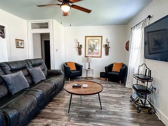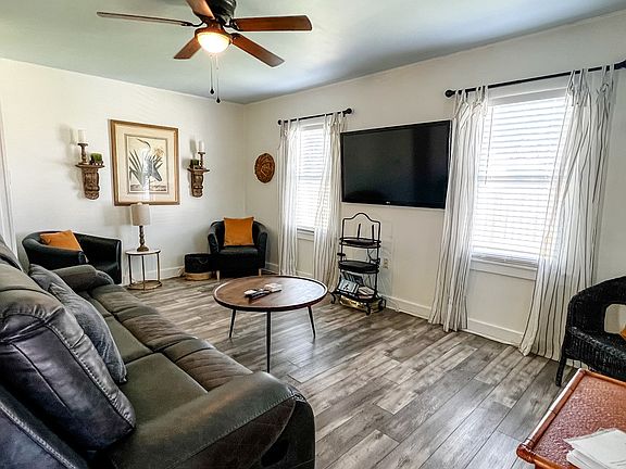 Florida cottage just a block away from downtown Reid Avenue. Great rental house that has been on the rental market for over 7 years. Many upgrades including, new sub floor and LVT flooring, stackable washer and dryer, dishwasher, and exterior doors on the backside of the home. Bathroom recently updated with a new bathtub and shower combo. Fully furnished with a King in the Master. Queen and Twin beds in the guest room. The house sits on 1 1/2 lots. Sand recently brought in to fill in the back yard. New privacy fence. Beautiful yard! Easy commute to amenities as well as the City boat ramp.