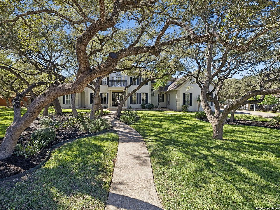 Nearly an acre in Shavano Park becomes the backdrop for a residence built around generous scale, updated finishes, and sincere indoor outdoor connection. Renovation executed with intention elevates the interiors, generous rooms settling into a rhythm that moves comfortably from gathering to retreat. Main-level living is the foundation, beginning with the primary and a private guest suite, followed by dual living spaces that open outward, a dedicated study, formal dining, and a Taj quartz-clad kitchen appointed with Sub-Zero refrigeration and an eight-burner Z-Line range. A substantial bonus room and three additional bedrooms sit above, extending flexibility without interrupting the ease of main-level living. A pool and spa form the center of the outdoor setting, joined by a putting green, an expansive lawn tucked just beyond, and a climate-controlled studio that offers a defined space for work or creative practice.