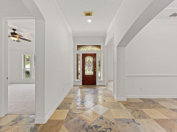 This exceptional, one-of-a-kind custom home, built by Partners in Building, is perfectly situated on the golf course in the sought-after Elkins Lake community. Fully remodeled in 2025, the home features fresh interior paint, new appliances, sealed floors, new carpet, and a new hot water heater, offering modern comfort and peace of mind. All bedrooms are conveniently located on the main level, while an expansive upstairs game room, complete with a half bath and wired for surround sound, provides the perfect space for entertaining or relaxing. Designed with the golf enthusiast in mind, the home includes a spacious three-car garage with a side door for golf cart access. The outdoor living space is equally impressive, with a covered porch, mature trees, and beautiful views of the golf course. With its rare combination of size, layout, updates, and premium location, this home is a true gem in Elkins Lake.
