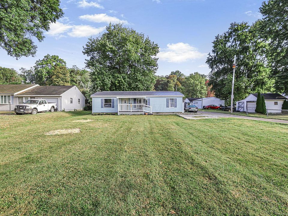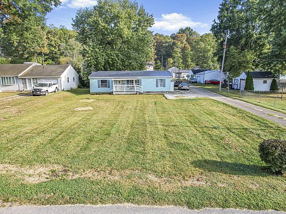 Adorable Ranch style home sitting on a double lot! Upon entry, you are greeted by a freshly renovated interior featuring new flooring and fresh paint throughout. The living space flows seamlessly into the updated kitchen, which boasts new stainless steel appliances and modern finishes. The primary suite provides a peaceful retreat with an open closet and a beautifully updated full bath. Two additional bedrooms and an updated bathroom complete this level. Additional updates to the electrical and plumbing systems bring peace of mind. Outside, enjoy a spacious front porch, fenced in backyard, and a detached 3 car garage/workshop with concrete floors and electric, ideal for storage or projects. Don't miss the extra lot located behind the garage! See A2A Remarks!