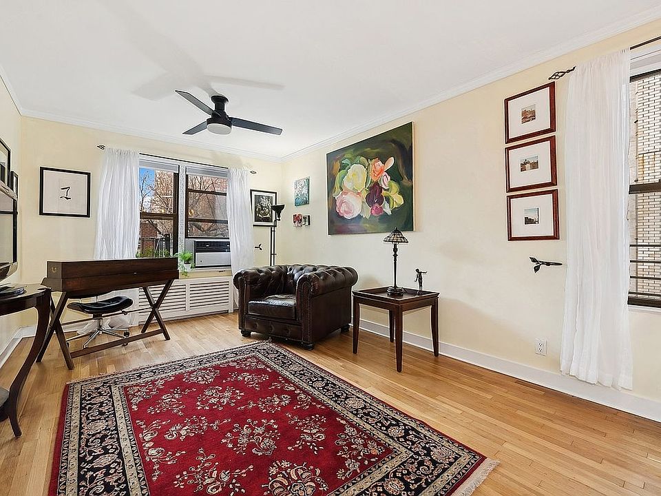 This flexible co-op is lender-approved and allows pieds-a-terre, co-purchasing, guarantors, and sublets with two-year residency. It is also pet-friendly.