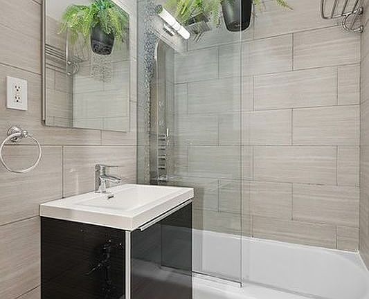 As you step into the apartment, you're welcomed by a spacious living area with 9-foot+ ceilings and hardwood floors throughout. Natural light floods the space through two large south-facing windows, a west-facing window in the open fully equipped kitchen with stainless steel appliances, and a skylight in the beautiful marble bathroom. The bedroom easily accommodates a king-size bed and additional furniture.