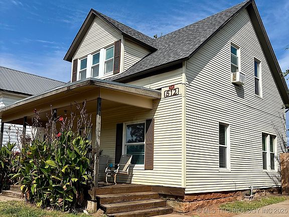 Welcome to 512 Broadway in Cushing Okla, a vintage single-family home with classic character. This home features an inviting front porch where you can sit, relax and enjoy your morning coffee before you start your day. 4 bedrooms, 1.5 baths with a spacious living room that opens to a large dining area. This home boasts a traditional floor plan which includes a spacious bedroom downstairs and the remaining 3 bedrooms upstairs. Home offers a large back yard with a newer privacy fence, which is perfect for entertaining family and friends. Call today for your showing!