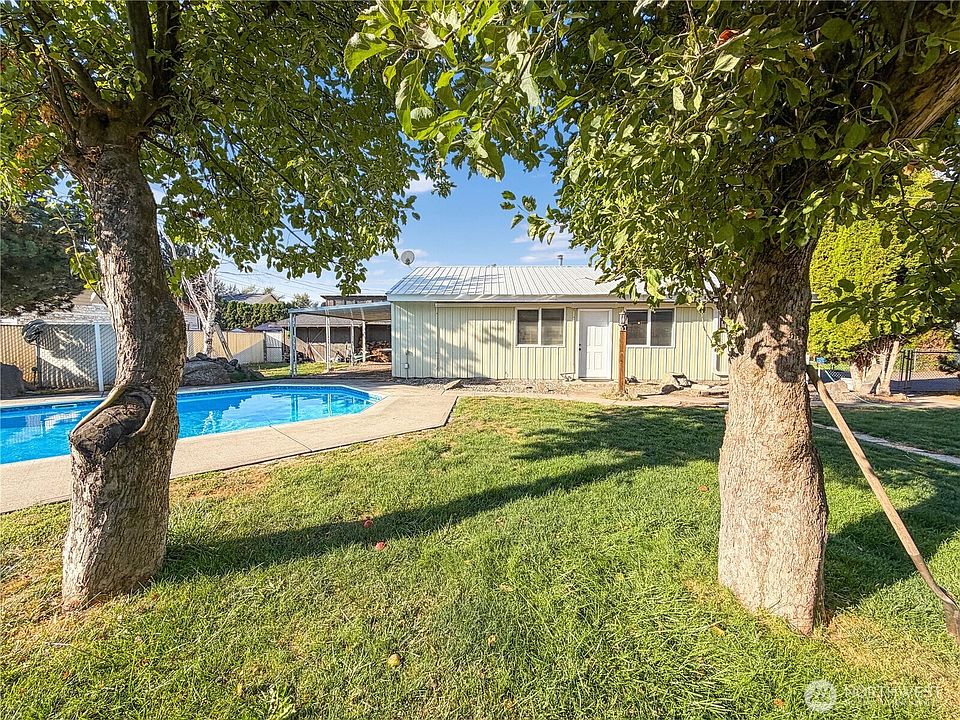 This Dayton home offers the perfect blend of comfort, fun, and potential. Enjoy summers by the sparkling in-ground pool and entertain with ease in the open living space featuring vaulted ceilings, a cozy wood stove, and bold kitchen with center island and plenty of storage. Loft-style bedrooms add charm and functionality, while the spacious yard with mature trees creates room to relax, garden, or play. A detached shop/bonus structure expands the possibilities for hobbies, storage, or guest use. With its versatile layout and amenities, this property also presents excellent potential as a short-term rental or Airbnb, making it a wonderful place to call home.