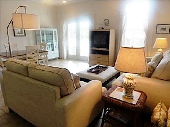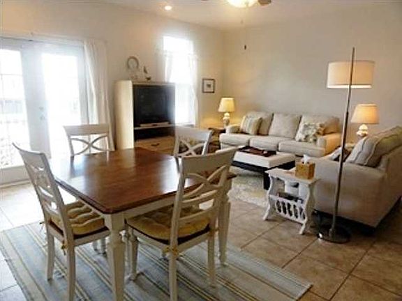 Impeccably maintained 3 BR/2BA Townhome walking distance from downtown Carrabelle and just minutes from Carrabelle Beach and public boat launching. Spacious open living area. Tile floors throughout. Large kitchen with generous cabinetry, corian countertops, breakfast bar, and pantry. Split bedroom arrangement. Large master suite with walk-in closet opens to covered southerly veranda. Two additional bedrooms This is the ONLY UNIT that has allows the two additional bedrooms to be accessed via rear deck stairs. Corner unit close to the community pool. Under house parking with 32'+ height clearance. Outdoor shower and fish cleaning sink. Two ground level storage rooms. This immaculate 2nd home is not a rental but is offered furnished and rental ready.