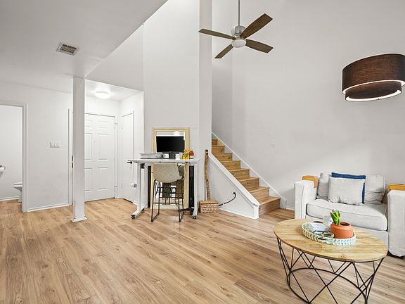 Welcome to 512 Eberhart #1403, a delightful 2-bedroom, 1.5-bath condo nestled in the established Sweetbriar community of South Austin. Located between S. 1st St. and Congress Ave. Situated just minutes from downtown Austin and the vibrant South Congress district, you'll have easy access to top dining, shopping, and entertainment options. The spacious downstairs offers an open-concept living area that flows into the kitchen and dining space ideal for entertaining. Upstairs, you'll find a generous primary bedroom and a guest room, connected by a convenient Jack-and-Jill bathroom with separate vanities. The home comes with a washer, dryer, and refrigerator, making move-in day a breeze. Enjoy the community amenities, including a swimming pool.