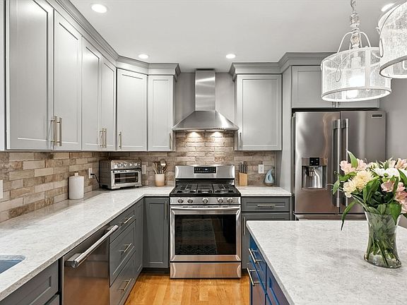- Features: Flooring - Wood, Dining Area, Countertops - Stone/Granite/Solid, Kitchen Island, Cabinets - Upgraded, Remodeled, Stainless Steel Appliances