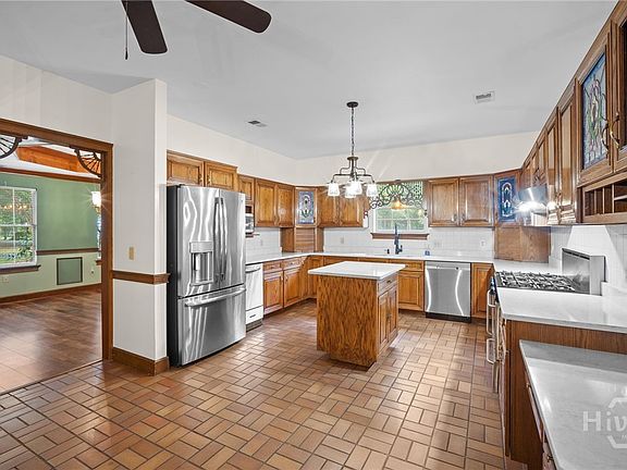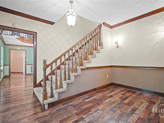Beautiful 2-story Single Family Home in Sangrena Woods. Grand Front View with wooded property driving up to Garage or Front Entrace. Curved floor plan boasts Large Master Suite with Loft on the ground floor also with Garden Tub, Double Vanities and Separate Shower. Large 2 Car Garage, Formal Dining, Eat-In Kitchen, Large Family Room with Fireplace, 1/2 Bath Downstairs, Laundry Area and Screen Room. 2nd Flr has Second Full Master Suite and 2 Additional Bedrooms totaling 4 bdrms/3.5 bthrms. Upstairs has covered porch overlooking entrance. Pool house has 2 bdrms/1 bth, fireplace, kitchen and large living area. Large Pool Area, Gazebo, Beautiful Deck with built-in seating, Barn and Pond. Very Private and Close to Downtown Pooler, Airport, Historic Savannah and More. A Definite Don't Miss!