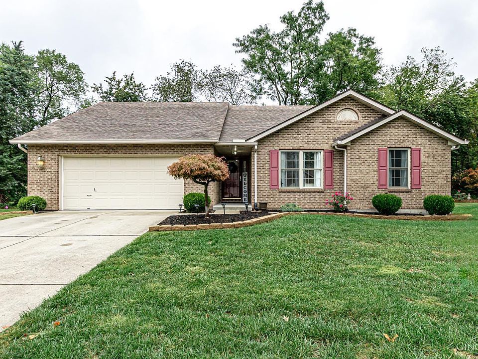This beautifully maintained 3-bedroom, 2.5-bath brick ranch offers 1,747 sq ft of comfortable, open-concept living. Step inside to soaring cathedral ceilings and natural light pouring in from two skylights in the spacious living room, creating a warm and inviting atmosphere. Recent updates include laminate flooring throughout the main living areas (2024), new stainless steel microwave and convection oven (2024), radon mitigation system (2024), and new CO2 and smoke detectors (2024). Major mechanicals have also been taken care of, with the roof and A/C both replaced in 2019 offering peace of mind for years to come. Enjoy the convenience of main-floor laundry and a full, unfinished basement ready for your personal touch. The HOA takes care of landscaping, including annual mulch, mowing, edging, and snow removal for both sidewalks and driveway. Perfect for low-maintenance living. Located just minutes from schools, parks, shopping, and dining, this home combines comfort and convenience.