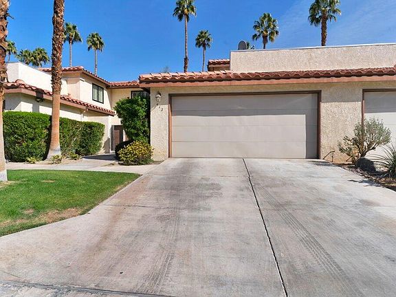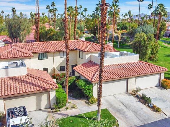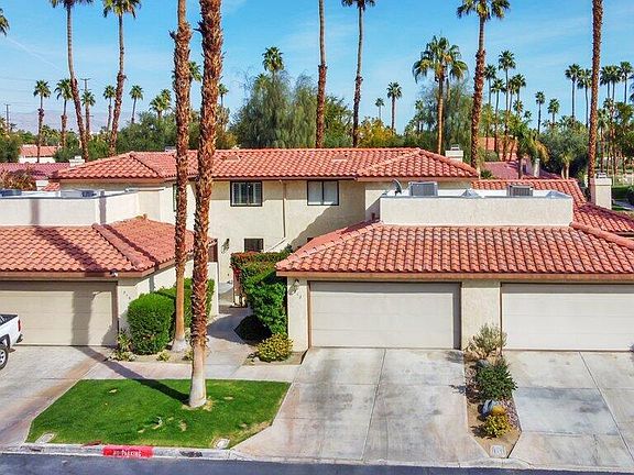 Serene Desert Retreat in Park Palms! Step into this charming Palm Desert oasis, where the tranquil ambiance of Park Palms welcomes you with lush landscaping, swaying palms, and vibrant bougainvillea. This well-maintained two-bedroom, two-bath condo offers a thoughtfully designed layout, perfect for both full-time residents and seasonal visitors looking for a peaceful retreat. As you enter, the two-story ceiling in the living and dining areas create an airy and inviting space, bathed in natural light. The living room's cozy fireplace adds warmth and charm, while sliding doors lead to a spacious east-facing patio overlooking a meandering stream--a serene setting to enjoy your morning coffee. The main-floor primary suite offers privacy and convenience, with an en-suite bath and direct access to the patio. Upstairs, the second suite features a walk-in closet and a dual-access bath, making it a perfect retreat for guests. The loft area provides incredible versatility--ideal as a family room, home office, or even an additional sleeping space. Located at the end of the street, just steps from the main pool--simply walk out from the back of the condo. Beyond the home itself, Park Palms offers resort-style amenities, including three community pools and spas, a clubhouse with a fitness center and sauna, tennis and pickleball courts, and a charming putting green. The gated courtyard entrance and two-car garage provide added privacy and convenience. Located in a prime Palm Desert location, this home truly embodies desert living at its finest, offering a blend of comfort, natural beauty, and an active lifestyle--all within minutes of top dining, shopping, and golf courses. Come experience it for yourself!