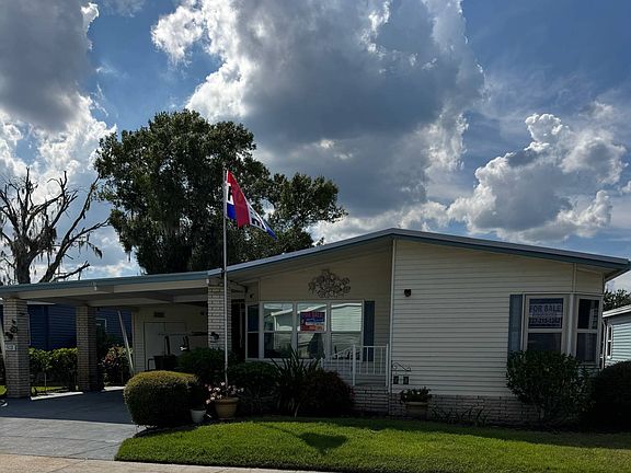 Motivated Seller !!! Welcome to this beautifully maintained 2-bedroom, 2-bath home located in a desirable 55+ gated golf community. Offering 1,456 square feet of comfortable living space, this home features an open floor plan that seamlessly blends the living, dining, and kitchen areas-perfect for entertaining or simply relaxing. The spacious kitchen boasts stainless steel appliances, a full-size washer and dryer, and a convenient laundry room inside the home. Both generously sized bedrooms can easily accommodate king-size beds, with the master suite offering a walk-in closet and a luxurious bath complete with a garden tub and separate shower. The guest bedroom also includes a large closet for ample storage. Enjoy peace of mind with a metal roof, a 2-month-old A/C system, all-new ductwork, and double-insulated windows for energy efficiency. A full-house water softener and a water heater replaced in 2022 add to the home's many upgrades. There's also a direct plug-in for a generator in case of a power outage. Outdoor living is a delight with a large 9' x 16' screened-in porch, a spacious patio, and a large storage shed with a wash sink. The covered carport can accommodate up to four vehicles. This home offers comfort, style, and convenience-all within a vibrant, amenity-rich community. Lot Rent is $1146.00 until 12/31/2025 Lot Rent Includes Water. Trash. Taxes As part of a vibrant Pet Friendly community, you will enjoy all the amenities two swimming pools, 2 clubhouses, with community activities. Fishing. Tennis, Pickleball, Game room, Fitness Center. Horseshoes. Library. Picnic Area. Putting Green. Shuffleboard. and access to the golf course there is a fee for golf course. you must talk to the pro shop for details.