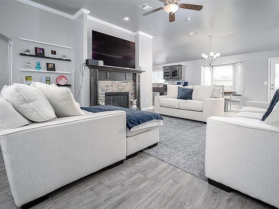 Welcome to Laleh Court! Behind the ornate glass paned door waits a spacious airy living room with wood look tile, stone fireplace, and tall ceilings. The open concept living area will make any occasion a breeze. The kitchen offers dark wood cabinets, granite countertop, tile backsplash, and pantry. The primary suite has new wood floors, tray ceiling, ensuite with double vanity, soaking tub, and step in shower. The backyard will be your favorite summer hang out with gas line for grilling, extended concrete patio, and the scenic view behind the home. The neighborhood also offers a great park and easy access to Highway 9.