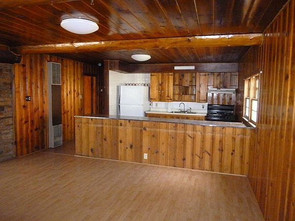 Home or business. Authentic rustic charm in the 3 bedroom 1 bath cabin plus an extra efficiency apartment 1 bedroom 1 bath. Large treed lot goes street to street. (Mechem-Upper Terrace) Knotted pine interior with large beams and rock fireplace, handicapped accessible, large deck, washer/dryer, open living area and pitched metal roof. Plenty of parking and fenced dog area. Driveway is partially paved. You choose the highest and best use for this C-2 Commercial property. You may enter from 512 Mechem or 209 Upper Terrace Dr. Property is on city water, city sewer and natural gas. So many possibilities here, take a look.