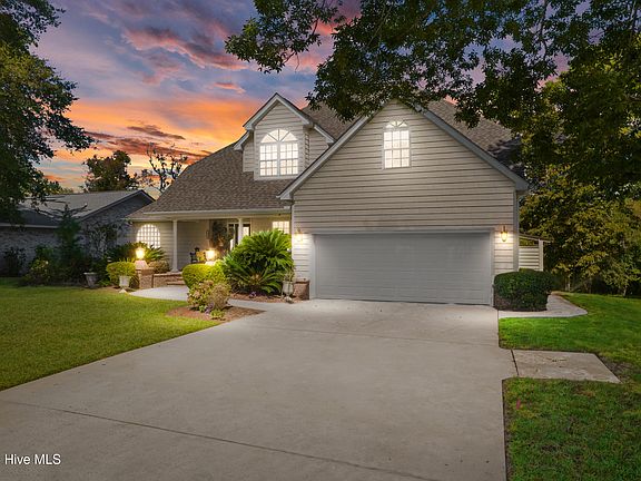 Welcome to your serene retreat in the sought-after beach town of Sunset Beach, North Carolina! Nestled in the heart of a waterfront community, this exceptional residence stands as a testament to refined coastal living. Mature landscaping frames the property, inviting you along a gentle path to the front door, where the sounds of nature create a welcoming ambiance.