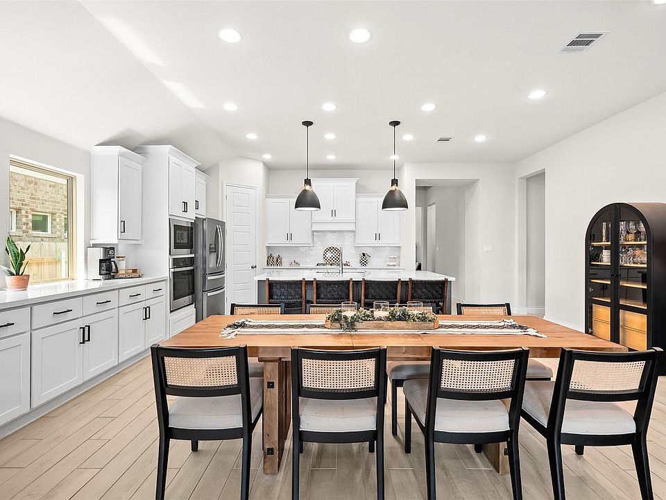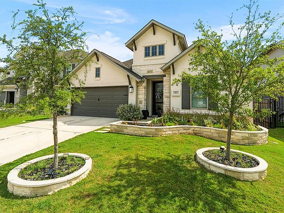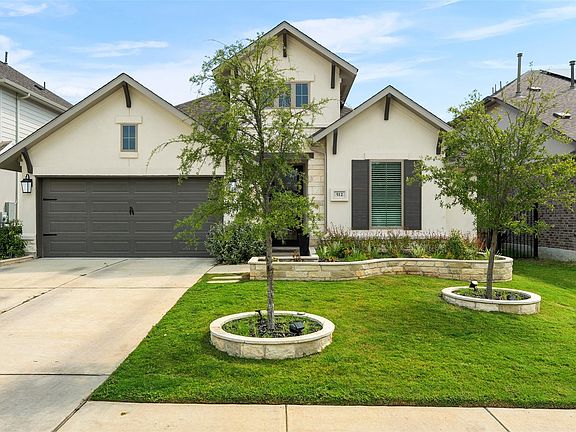 Welcome home to 512 Monrovia Court, a generous opportunity to move into a coveted section that is rarely offered and strategically zoned for the highly accredited Liberty Hill School District, within the master planned community of Santa Rita Ranch. Situated on a cul-de-sac and just a quick walk to two of the 3 amenity centers this home has access to, the location of this home couldn't get any better. Now enter through the covered porch and admire the open floor plan that boasts tall ceilings and ample lighting. A bright office or playroom, access to the oversized garage and a nice drop zone all welcome you at the front of the home. Heading toward the kitchen is an en-suite with a private bedroom and full bathroom with walk in closet. The upgraded kitchen boasts stylish pendant lighting, tons of cabinetry and a large pantry, a farmhouse sink in a large island plus an additional counter space on the side. All of this overlooks the open concept with a large living room and access to the fully turfed backyard. There's a private wing with two nicely-sized bedrooms and a full bathroom as well as a laundry room. The back of the home features a private primary bedroom with a thoughtfully designed bathroom flowing into two large walk-in closets. Living at 512 Monrovia Court comes with the perk of living in Santa Rita Ranch, an award winning community that never falls short of activities and amenities, including access to all sections of the ranch which (at present) totals- 4 swimming pools, pickleball, volleyball and basketball courts, 4 playgrounds, tons of trails, several lakes, a dog park, indoor meeting space with a brewing coffee machine, splash pads, water slides, and a full-time activities director. Living at 512 Monrovia means a neighborly 16 minute walk to the new on-site Tierra Rosa Elementary School, 512 Monrovia and Santa Rita Ranch welcomes you home.