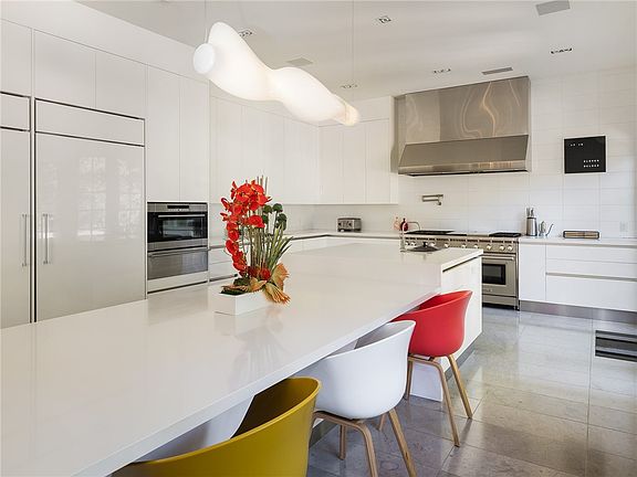 A rare find in the heart of Beverly Hills and meticulously renovated in 2014, this move-in-ready estate in The Flats seamlessly merges comfort with unparalleled design, creating an extraordinary contemporary retreat. The grand two-story foyer sets the tone for the interior, featuring formal and informal living areas with gas fireplaces, a modern open workspace, ground-level fifth bedroom and en suite. Every detail has been carefully considered, including a three-car garage equipped with an electric vehicle charging station, an in-home elevator, central vacuum, state-of-the-art security system, and a comprehensive water filtration system that services the entire residence. The heart of the home is the gourmet kitchen, adorned with elegant finishes such as Caesarstone counters, an expansive waterfall-edge island, and wall-to-wall imported lacquered cabinets. No expense was spared in the upgraded appliance and accessories package, which includes top-of-the-line Sub-Zero, Miele, Wolf, and Gaggenau appliances, fulfilling every culinary enthusiast’s dream. Ascending to the upper level, discover a luxurious haven with four bedrooms, each boasting en suite bathrooms, walk-in closets, direct access to a spacious terrace, and automated blackout shades. The primary suite stands out with its comfortable sitting area, a 55-inch Bang & Olufsen TV on a motorized articulating wall mount, built-in shelves and desks, and dual walk-in closets. The primary bathroom is a lavish retreat, offering an oversized glass steam shower, soaking tub, his and her toilet rooms, and double vanities. Outside, the grounds create a serene oasis with meticulously landscaped gardens, a koi pond, and an outdoor barbecue kitchen. The patio area is perfect for al fresco dining, while the sparkling pool and spa provide a refreshing escape from the California sunshine. This exceptional property offers a private sanctuary with convenient access to Beverly Hills' finest amenities and exquisite dining options.