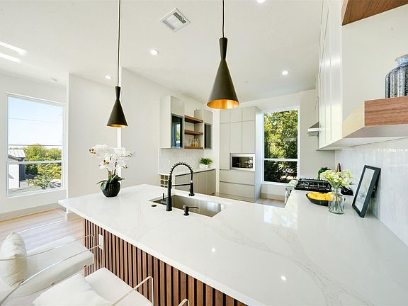 Welcome to Lancaster Townhomes, designed with a sleek farmhouse-style exterior and modern interior finishes. This 1,980 sq ft townhome exemplifies luxury living, featuring 3 bedrooms, 3.5 bathrooms, a dedicated office space, and a rooftop deck. Inside, you'll find thoughtfully designed interiors with high end finishes, including engineered wood flooring throughout, custom built in cabinets in the bedrooms, European style kitchen cabinets, quartz countertops, and an accent wall around the TV in the living room. The open floor plan, combined with taller doors and bigger windows creates a spacious and relaxing atmosphere. Step outside to a private rooftop deck with stunning views of the city skyline. The home also offers large closets and a 2-car garage, providing ample storage space. Situated in a prime location, this townhome is close to the popular Bishop Arts District, downtown Dallas, the Farmers Market, Deep Ellum, and other local attractions.