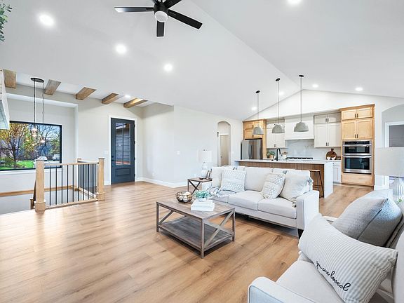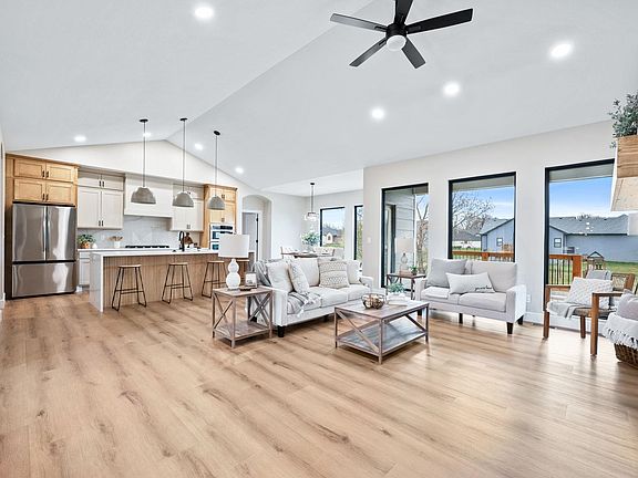 This stunning brand-new home offers the perfect blend of modern style and thoughtful design. Featuring 3 bedrooms, 2 bathrooms, and an unfinished basement with framing already completed for two additional oversized bedrooms, a bathroom, a wet bar, and storage—you’ll have room to grow and customize to fit your lifestyle. Step through the beautiful 8ft front door, and the gorgeous beamed entryway and you're greeted by luxury vinyl flooring, lots of natural light pouring through the 3x7 black picture windows, and a cozy black stucco fireplace that anchors the spacious living area. The kitchen is a true showstopper with all new Samsung stainless steel appliances, including a 36" gas cooktop, quartz countertops, quartz backsplash, and a stunning quartz waterfall island. You’ll love the sleek custom cabinetry, walk-in pantry with custom build shelving, and the convenience of main floor laundry just steps away. This split-bedroom floor plan offers a private primary suite featuring an oversized tile shower with glass doors, a striking 8-foot floating double quartz vanity, and a thoughtfully placed center window for natural light. Outside, enjoy relaxing or entertaining on the 16x12 covered deck, while the brand-new sod (front yard), landscaping, and sprinkler system make maintenance a breeze. Don’t miss your opportunity to own this beautifully designed home in one of Valley Center’s most desirable neighborhoods.