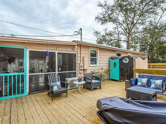 Looking to slow down the pace of a hectic life? Just want to get back to nature and watch the clouds roll by? Take a look at this cute mid-century north Florida home located in Carrabelle. Well kept and private, this home has an open floor plan, 2 bedrooms and 1 bath. House boasts a trendy metal roof. Stylishly painted, brick, wood burning fireplace was recently inspected with a new cap added. Room for an office or add a wall for bonus space. Heated and cooled by mini-split system and portable ac units really cuts down the cost os electric bill. Kitchen is well equipped with matching newer appliances and has new cabinet unit for added storage. Also take a look at the original refinished heart of pine floors. A working stackable washer/dryer is also included . Pull a stool up to the new butcher-block counters at the breakfast bar. There's a view of the river from the gigantic screened porch and inside the home. High and dry oversized lot with plenty of room to park your cars, boat, RV plus a golf cart. Essential wood fence offers privacy to your new retreat. Secure chain link fence surrounds the double lot, small shed for storage and two gates offer seamless pull through parking. Public water and city sewer, plus new water heater. Walk to the River and many restaurants/bars/live entertainment. The hardware and grocery store are across the street. Two blocks from the boat launch and two miles to the white sands of dog friendly, Carrabelle Beach. Bonus to sportsmen is a fish cleaning station and large open deck with private shower.