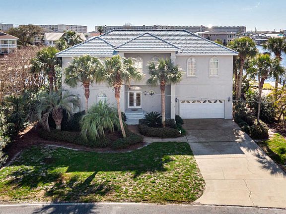 Positioned at the intersection of two canals, this boater's respite on Holiday Isle beckons the fisherman at heart with two 50' boat slips, palm-lined swimming pool, and stately facade. The improved boating maneuverability possible at this location is a rare find on deep water. 512 Norriego is located in close proximity to the sandy shores of Destin's coveted gleaming white beaches with gated access for Holiday Isle owners and guests. This one-owner home is open, spacious, and inviting, an ideal canvas for your personal touches. It allows plenty of privacy with five bedrooms, including a bunk room with a private bath. The second-floor master suite and personal deck is situated perfectly for views of the canal.