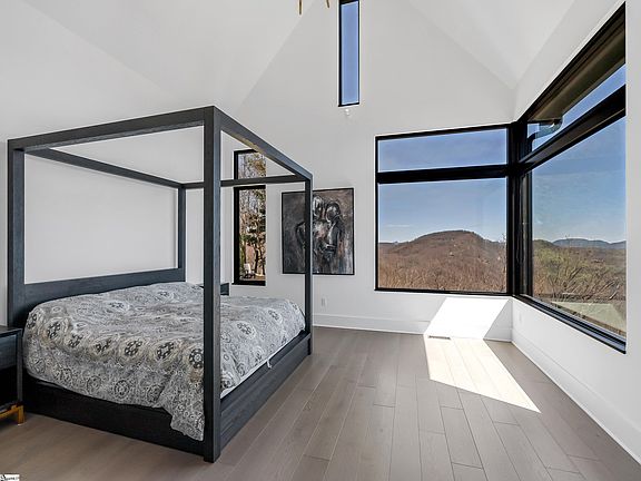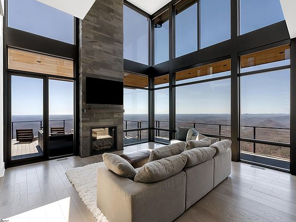 Nestled at the end of a long, private driveway, 512 Panther Mountain Road is an extraordinary modern mountain retreat that perfectly blends natural splendor with the convenience and luxury of a gated club community. Perched at an impressive 2,700 feet in elevation, this exceptional home offers breathtaking panoramic views that stretch for miles. This home is ideally situated on the property, designed to embrace its stunning surroundings, the home features floor-to-ceiling windows, expansive outdoor living spaces, and an elevated position that captures the beauty of every sunrise & sunset. Whether you're relaxing on the wrap-around deck or enjoying the views from the comfort of the open-concept living area, this home provides a peaceful, private escape high above The Cliffs Valley. This home is truly move-in ready, with all furnishings included in the price, allowing you to effortlessly settle in and start enjoying your new mountain retreat from day one. The striking entryway, with its sleek geometric walkway & expansive windows, provides a captivating glimpse into the rich textures & exquisite details that await inside. Step inside, & your eyes are immediately drawn to the breathtaking long-range mountain views, framed by floor-to-ceiling glass windows. The wrap-around deck & outdoor living area create an inviting space for both relaxation and entertaining to continuously take in the best views in Valley. Designed for effortless living, the open floor plan showcases a chef’s kitchen with an oversized island, high-end appliances, a six-burner gas cooktop with a contemporary exhaust hood, and custom cabinetry. A generous walk-in pantry offers ample storage, while the adjoining laundry room—complete with extra storage & a stunning view from the sink—adds practicality. The adjacent dining room, illuminated by a hand-blown glass globe chandelier tying in with the pendant lights over the kitchen island, is the perfect setting for gatherings. The spacious exercise room, complete with rubber floors & large windows provides an inspiring space for workouts. The attached two-car garage caters to both storage and recreational needs, with a nearby, thoughtfully designed, "drop zone" area with a built-in bench & dedicated storage space, making unloading from the garage convenient & organized.  The primary suite, located on the main level for maximum privacy, boasts soaring cathedral ceilings, large windows, an oversized walk-in closet, & a spa-like bathroom with dual vanities, high-end finishes, & a linen alcove. A charming powder room & a bright office complete the main level. Ascending the modern floating staircase, the second level provides the perfect retreat for guests, featuring three spacious bedrooms. In addition to the bedrooms, you'll find a large flex room, providing endless possibilities to suit your lifestyle. Whether you envision it as a media room for family movie nights, a game room for friendly competitions, a craft space for your creative projects, or simply additional storage, this versatile room offers the flexibility to meet your needs. Plus, its high ceiling provides ample space for a golf simulator, adding even more potential to this dynamic space. With its expansive layout & thoughtful design, the second level is the perfect space for both relaxation & entertainment. This home sits on over 11 acres, further enhancing the home's idyllic privacy and views. Built in 2022 by 2024 Pinnacle Awards Winner, Fairview Custom Homes, and designed by architect Scott Crichton of Architecture 224 LLC, discover the perfect blend of modern design and mountain serenity in this exceptional home. Take advantage of this unique opportunity at The Cliffs Valley, conveniently located minutes from the Valley North gate and Highway 25—just a short drive from the historic downtown of Hendersonville & bustling Greenville. A Club membership at The Cliffs is available for purchase with this property giving you access to all seven communities.