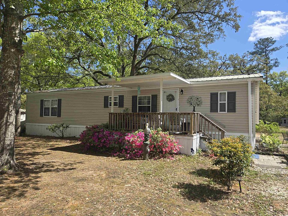 This home is turn key!. With the beautiful floors and furnishings you will feel right at home. This homes comes with a detached shed and a golf cart! A metal roof was installed in 2020. Gutters added, decks repaired and enlarged. HVAC was installed in 20223.