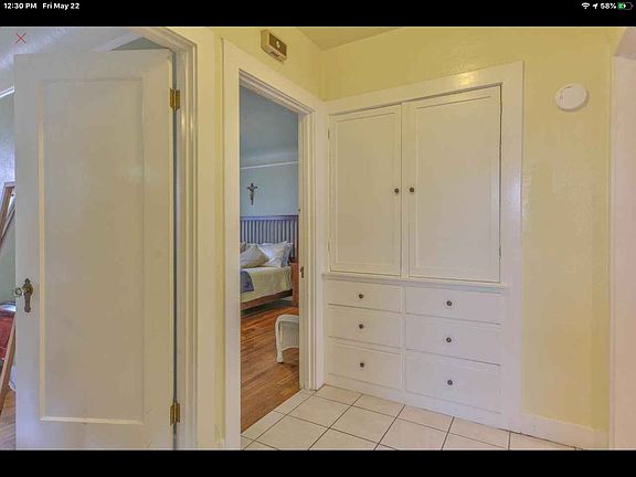 Classic architectural touches: coved ceilings, original wood floors, built-in cabinets