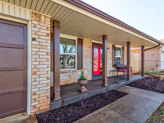 Charming 3 bedroom/1bath in Mustang, located in the desirable Meadows Neighborhood. Close to schools, shopping, dining and minutes from the Turnpike. This rental property offers new energy efficient windows, new roof, backyard fence, and storm shelter. Appliances include washer/dryer, refrigerator, microwave and stove. Applications available upon request (Zillow applications not accepted). 1 year lease, renters insurance required, utilities not included