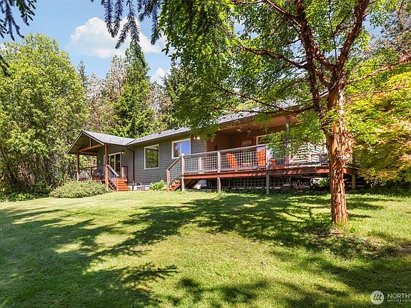 Magical setting for this 5.25-acre property w/a gem of a home, a 1440 sq foot shop, & is located just minutes outside Port Townsend. Tranquil setting at the house site w/breathtaking views of Olympic Mountains & foothills. Upper property has expansive, sunny, meadow (room for garden, furry friends, etc.) & 1440 sq foot shop w/200-amp service, 14' door, & comfortable bunk/guest quarters. One-story living, home was renovated in the mid-2010's & features include, new roof, two ductless mini splits, tiled walk-in shower & heated tile floors, soaking tub w/views walk-in closet & large bedrooms, two covered decks facing view. Property amenities: drip irrigation system, several fruit trees, 3 bdr septic system, property borders Larry Scott Trail.