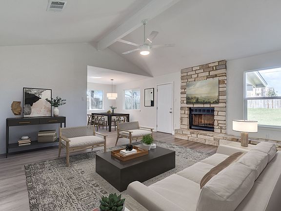 Discover the charm of this reimagined bungalow nestled in desirable Pflugerville. Boasting 3 cozy bedrooms and 2 full bathrooms, this home has so much to offer. The floor-plan is perfect for entertaining and features a spacious living room, stone fireplace and lovely dining space leading to the kitchen. New SS appliances, design savvy fixtures and lots of natural light enhance this gorgeous kitchen. The generous primary suite has a en suite bathroom with walk in shower and updated tile. Secondary bedrooms share an additional full bath and make great flex rooms/ office if needed. Enjoy serene Austin evenings on the charming back porch. Don't miss the opportunity to make this enchanting residence your own!