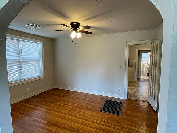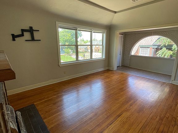 One side of a duplex within walking distance of Edgemere Park and Paseo District. Includes two large living spaces, dining space, one bedroom, and one bathroom. Original hardwood floors and a lovely crescent window in the main living space. A new front door and new windows have been installed throughout the home. Insulation has been redone and dampers installed to control airflow. There are ceiling fans in one living space and in the bedroom. The bedroom includes a large closet and two large windows. There is extra storage space in two large closets in the second living space. Includes a spacious front deck and one off-street parking space. The hot water heater and heat run off gas. Stove and ac run off electric. Washer and dryer are in the unit. *no dishwasher*