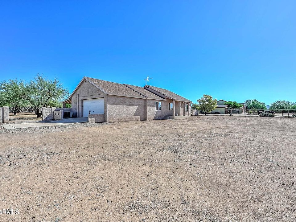 Fantastic opportunity to own a quality built home on a flat usable 1.19 acre lot just a few yards off the paved Seventh Ave! Fully fenced around the perimeter plus back yard fencing plus a large area off the covered patio is fenced for ultimate privacy and/or for pets/kids to play. Two car garage features 8' tall door, built in cabinets and a storage closet. The open floor plan offers a super spacious great room with vaulted ceiling in between the Primary Bedroom Suite and Secondary Bedrooms and guest bathroom. Hallways and most doorways are 30'' wide and interior is all on one level. Sunny kitchen complete with breakfast area, pantry, tile backsplash, solid surface countertops, all appliances including washer and dryer in laundry room.