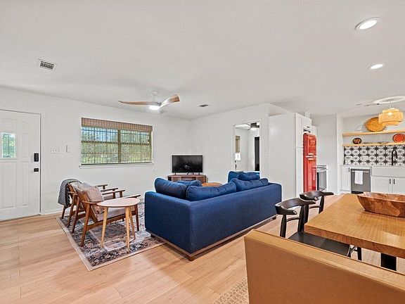 This beautifully updated 2-bedroom, 1-bath home is perfectly situated just two blocks from the heart of historic Johnson City. Surrounded by mature shade trees, it offers a comfortable blend of small-town charm and everyday convenience. Inside, the bright and functional layout includes a versatile bonus room—ideal as a home office, creative space, or guest area. The backyard is designed for easy maintenance with turf and xeriscaping, so you can spend more time enjoying it and less time working on it. A covered porch offers the perfect spot to relax or entertain, and there’s a utility room and large storage shed for added functionality. Walk to local favorites like Pecan Street Brewery, The Science Mill, and the iconic Blanco County Courthouse—all just minutes from your front door. Whether you're looking for a full-time residence, weekend getaway, or STR, this one checks all the boxes. Currently operating as a successful Airbnb, this home offers immediate potential for short-term rental income. The seller is also willing to leave furnishings if the new buyer would like to continue using it as a turnkey rental. Don’t miss your chance to own a piece of the Texas Hill Country in one of its fastest-growing communities.