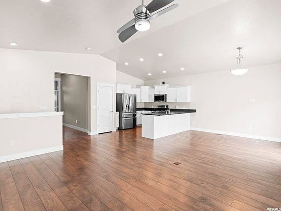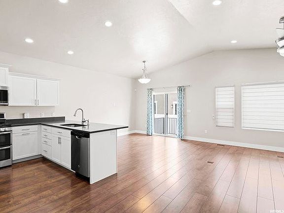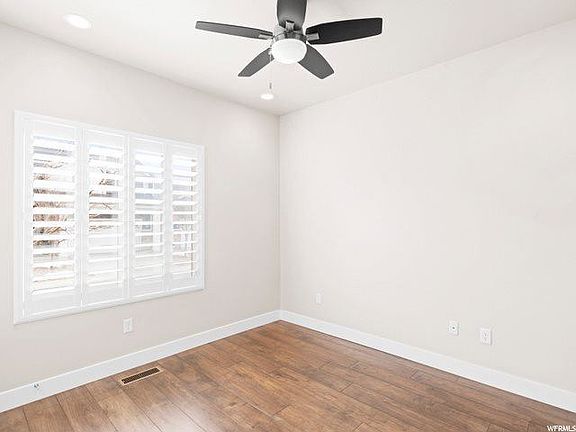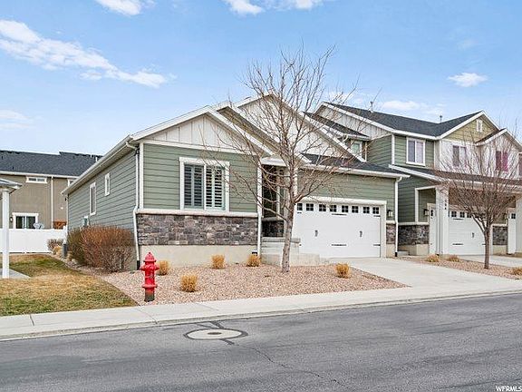 Step inside this unique rambler-style townhome and you'll discover a spacious interior that will make you forget all about the cozy exterior. Tucked away in a convenient location with easy access to I-15, this home offers a smart layout with added interior doors that create a private workspace or nursery in the front bedrooms. Gorgeous dark laminate hardwood floors flow throughout the main floor, while the kitchen is equipped with stainless steel appliances, black quartz countertops, and sleek white shaker-style cabinets. Plus, the dual washer and dryer hookups (both gas and electric) make laundry a breeze. But that's not all the home is packed with top-of-the-line features like Hunter Douglas motorized window treatments with blackout shades, custom Plantation Shutters, and Lutron Caseta Dimmers that can be controlled from your smartphone or virtual assistant. You'll also appreciate the upgraded electrical system, complete with extra can lighting, 20 amp outlets, USB ports, and Cat 5 jack. For ultimate convenience, electronic locks integrate with the whole home connectivity, and 1 Gig Fiber internet is included with the HOA. And with an oversized garage featuring a dedicated outlet for a freezer, MyQ garage remote opener with keypad, and overhead storage racks, you'll have plenty of space to store all your belongings. Best of all, this move-in ready home requires no repairs or updates just bring your personal touch and make it your Next Home.