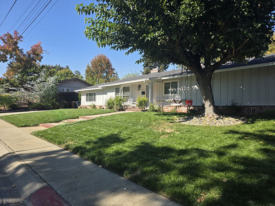 Stunning 3 bedroom 2 bath expanded ranch home with a private park-like backyard right down the street from highly-rated Strandwood Elementary! Feel a sense of home from the moment you enter the spacious sunny living room with its large picture window, newly refinished hardwood floors and stylish brick fireplace. Form and function harmonize in the large eat-in kitchen with granite counters, grey-toned cabinetry, gas stove and stainless-steel appliances. Enjoy entertaining family and friends in the versatile bonus/family room with convenient indoor laundry and extra storage closet. Roomy master retreat with a large walk-in closet, en-suite bath and convenient backyard access. Fabulous backyard oasis with lush manicured lawns and a large patio area, perfect for outdoor dining and entertaining. Well-appointed garden shed provides extra storage. Near BART, shopping, highly rated schools.