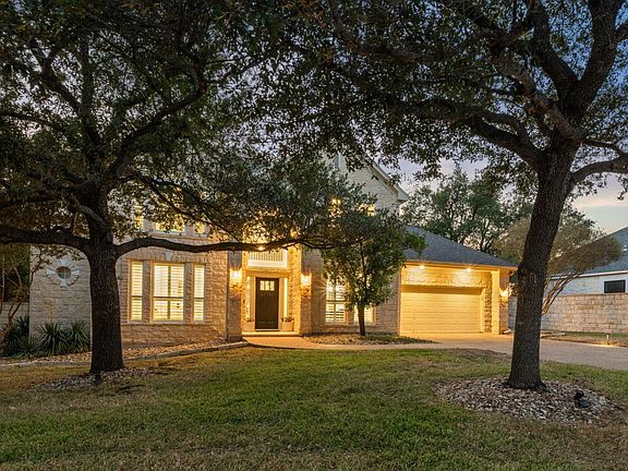 Welcome to this beautiful white stone home in the highly sought-after River Place, just steps from Sun Tree Park. Tucked on a peaceful cul-de-sac, it features upgraded Simonton windows with plantation shutters, a spacious 3-car tandem garage, and two new top-of-the-line variable speed AC systems for year-round energy-efficient comfort. Inside, soaring ceilings and an open-concept layout create a bright, inviting space with multiple living areas perfect for entertaining or relaxing. The main level includes a dedicated office with French doors and a large front-facing window, offering the perfect space to work from home in style and comfort. The living room seamlessly flows into the kitchen, creating a bright, welcoming space where conversations move as easily as the floor plan. At the heart of the home lies a fully renovated chef's kitchen featuring a sleek island, breakfast bar, gas cooktop, high-end touchscreen SS appliances, & soft-close cabinetry with pullout shelves for optimal storage. Enjoy casual meals in the sunny eat-in kitchen or host gatherings in the elegant formal dining room. The main-level primary suite is a serene escape with bay windows & a spa-like bath featuring a jacuzzi tub, frameless walk-in shower, & dual vanities. Upstairs, a spacious additional living area is ideal for a kids' playroom, teen hangout, or media space, along with 3 generously sized secondary bedrooms and 2 full baths. Step outside to your backyard oasis—an expansive stone patio shaded by mature trees, including a majestic Heritage Oak. The 8-ft stone privacy fence offers unmatched seclusion, and a stone shed with electricity adds storage or hobby space. Zoned to top-rated schools: River Place Elementary (walk/bike distance), Primrose, Kido, School in the Hills Montessori, Four Points MS, and Vandegrift HS. Walk to Sun Tree Park, River Place Country Club & golf course, and scenic hiking trails. Minutes to Target, H-E-B, Lake Travis, The Domain, and Downtown Austin.